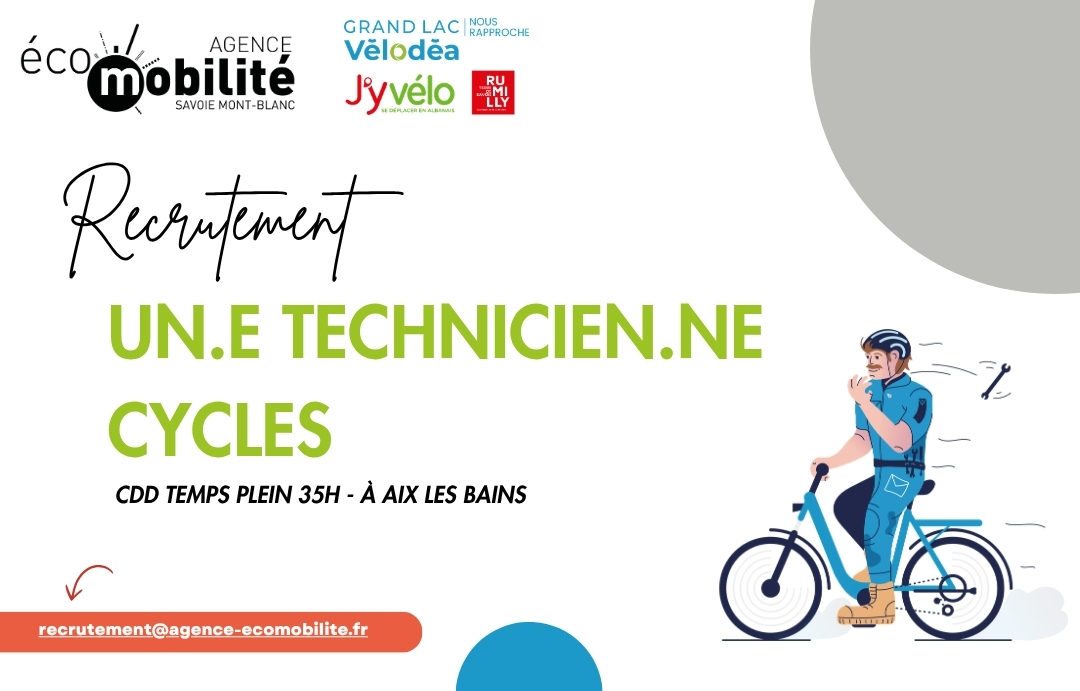 L’Agence Écomobilité Savoie Mont-Blanc recrute un.e technicien.ne cycles en CDD jusqu’au 31/10/2026 pour les services vélo Vélodéa Aix-les-Bains et J’yvélo à Rumilly.